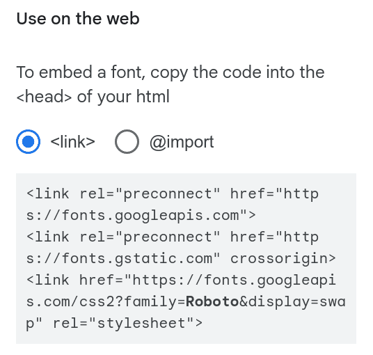 Figure 20.15. Google Fonts instructions to preconnect to fonts.gstatic.com and fonts.googleapis.com. (Source: Google Fonts)