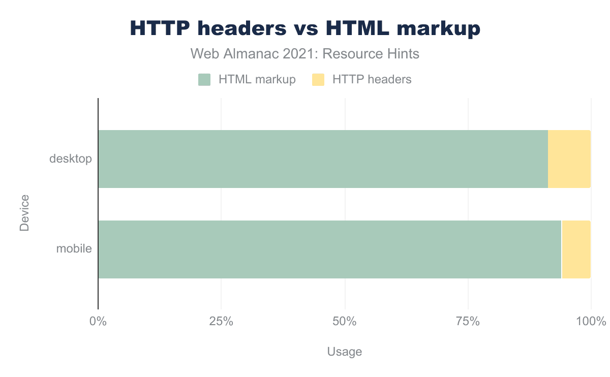 Considering that the adoption of resource hints using HTTP headers is markedly smaller than adoption for the <link> HTML element, the rest of this chapter will focus on analyzing the usage of resource hints through the HTML element.