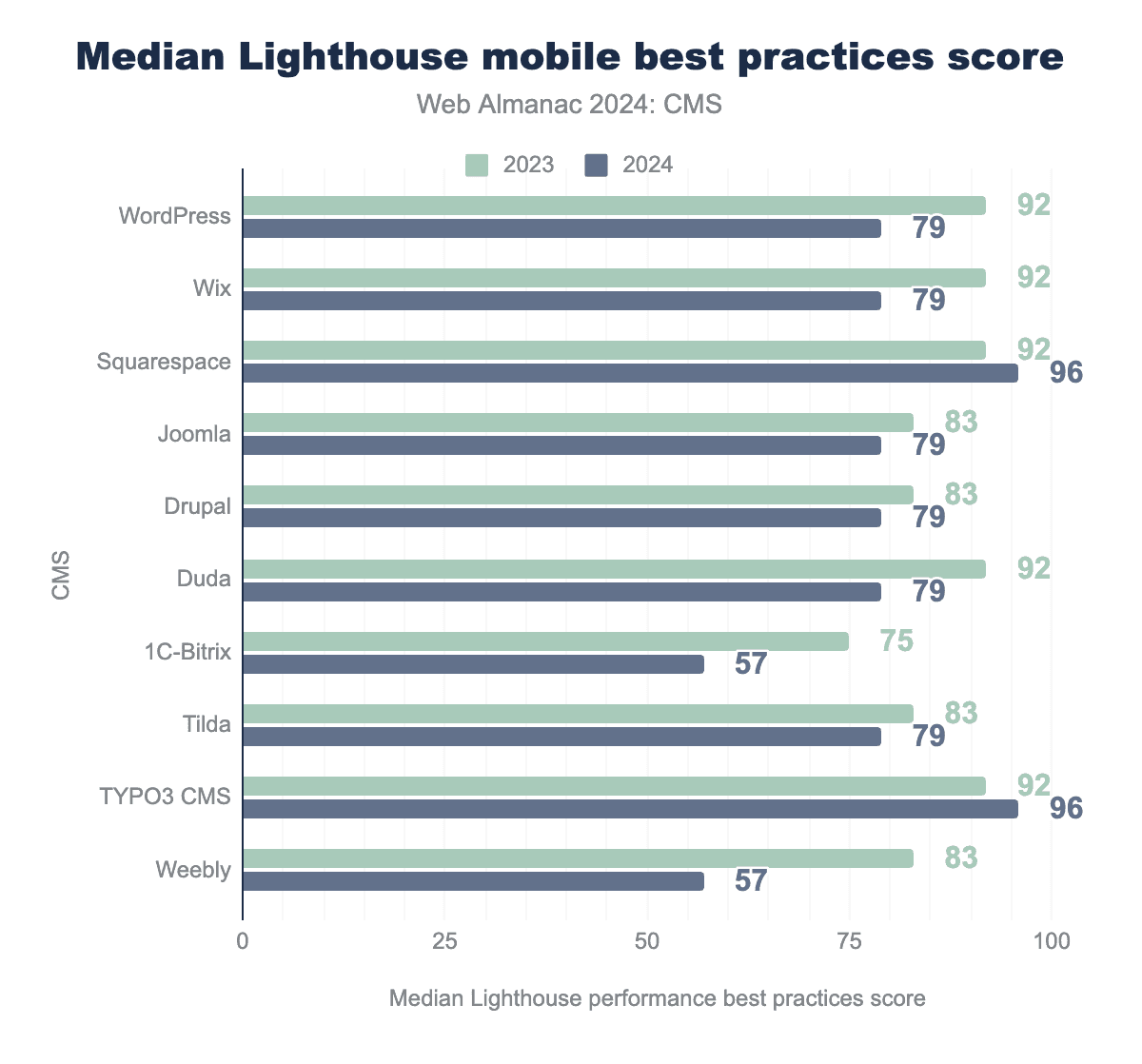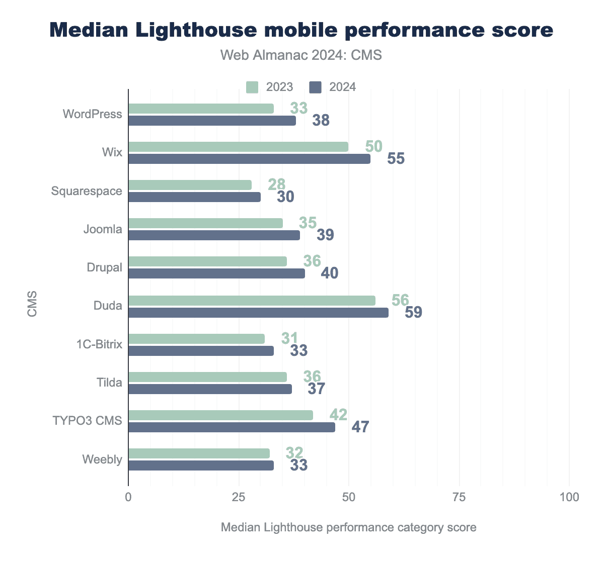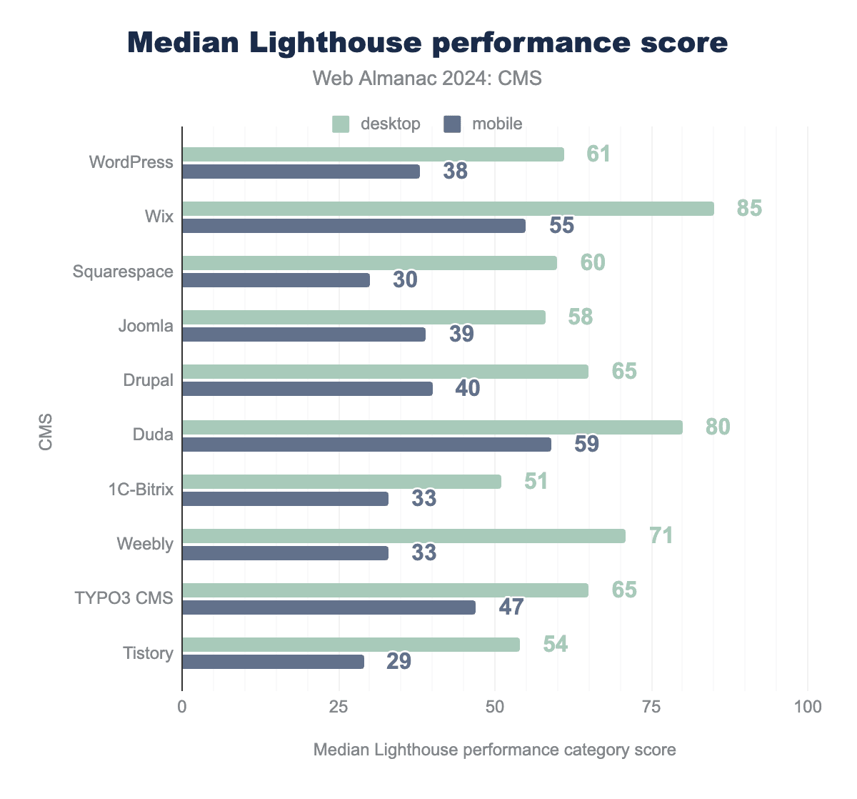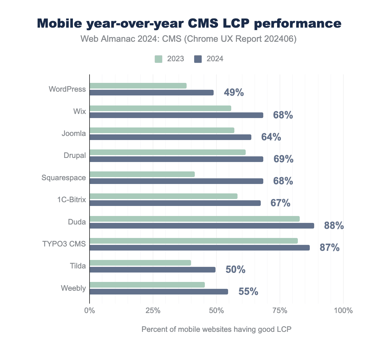 Challenges persist, however. As CMSs expand their capabilities and adopt new technologies, balancing added functionality with performance remains crucial. Issues such as page weight and JavaScript load continue to impact some platforms, especially on mobile, underscoring the importance of ongoing optimization and adherence to best practices.