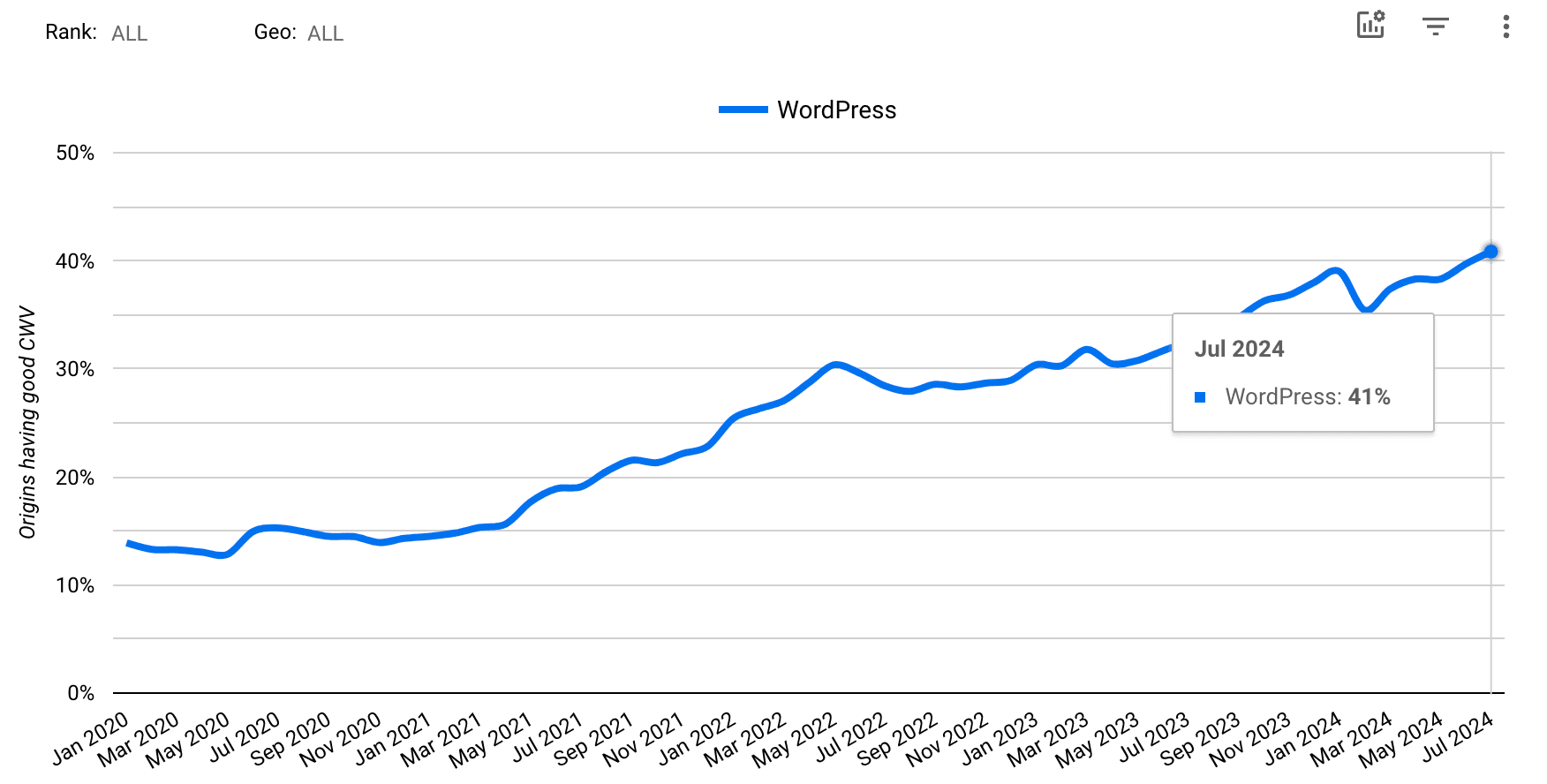 Furthermore, since they first kicked off the project in November 2021, WordPress’s overall Core Web Vitals pass rate has surged by 12%.